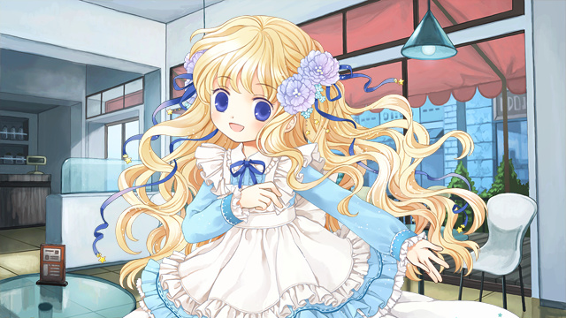 そんなビワだらけのケーキが並ぶショーケースの上に、その少女はどーんと仁王立ちする。年頃は10歳ぐらいか。お姫様のようなドレスを着ているが、模様や小物は全てビワモチーフというこだわりようだ。