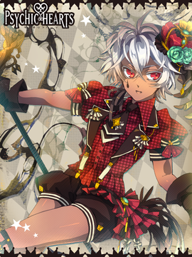 【あるシャドウ】により、人を苦しめるために力を使わされていた。その際に共に笑うことを強制されていたためか、救われた後には笑みの表情が作れなくなっていた。指で口角を釣り上げて表情を作って笑うようにしている。毎日鏡の前で30分ほど笑顔の練習をしているが、なかなかうまく行かない。みんなの笑顔を見ることで自分も笑えるようになるかもと思っている。…自分の感情を持て余している。◆スートはダイヤ。 |
